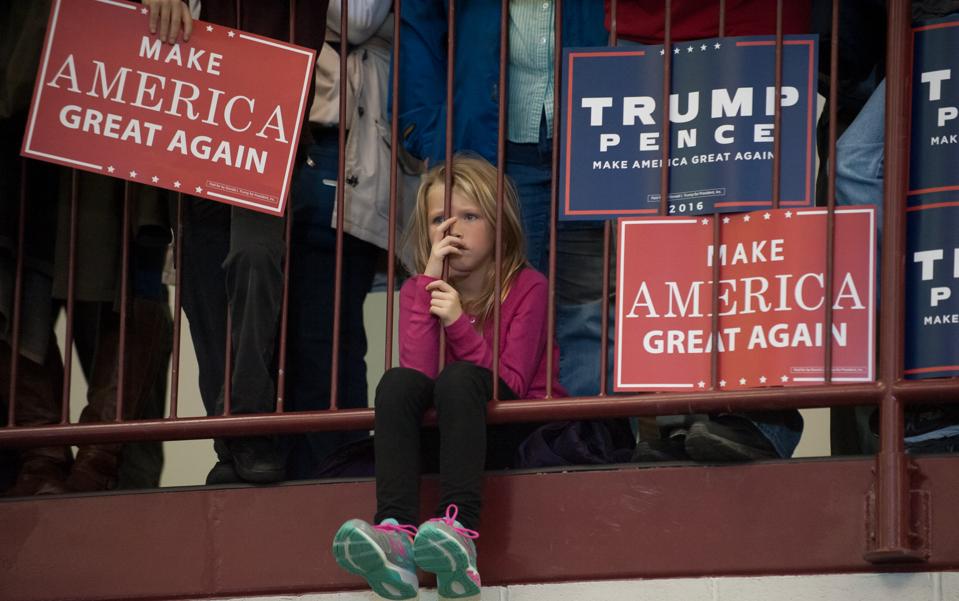 GENEVA, OH - OCTOBER 27: Supporters listen to Republican presidential nominee Donald Trump speak at a campaign rally.(Photo by Jeff Swensen/Getty Images)